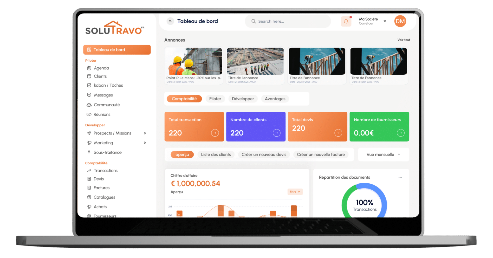 En tant qu’artisan ou PME du bâtiment, votre but n’est pas de passer votre temps braqué sur le téléphone ou l’ordinateur. L’objectif de Solutravo, vous simplifier la vie !